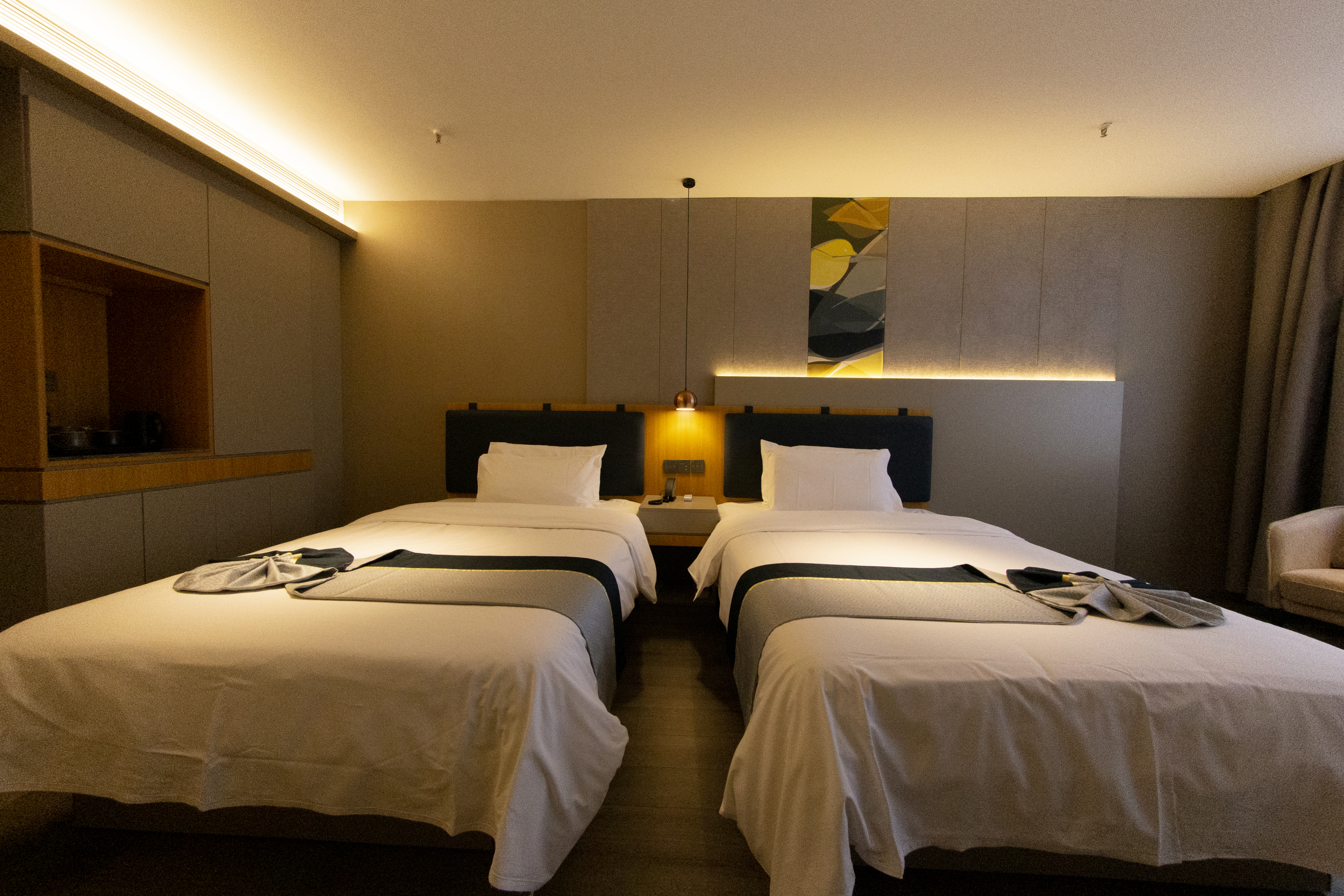 酒店位于淮北政治、文化、体育中心地带,毗邻市委、市政府、体育馆、粮食局、博物馆、万达广场、南翔云集、中泰购物中心等:酒店交通便利,距淮北市火车站高铁站约2.5公里,距长途汽车站约3公里;酒店附近风景优美,有相山公园旅游景区、老城古板街、南湖湿地公园等,世界级文化遗产隋唐大运河古镇由五凤三阁景区、元辰殿、月老神庙、漕仓堰闸景区等部分组成,距离酒店仅1.8公里。酒店周边餐饮、娱乐、购物及银行等配套齐全。优美的环境、优质的服务、简约的风格是繁忙的商务客人及休闲旅游客人温暖舒适的理想家园。